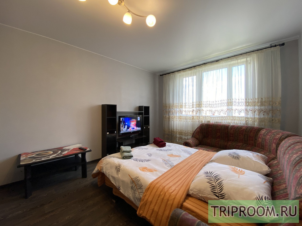 В комнате широкая двуспальная кровать и двуспальный диван, шкаф-купе, телевизор со 160 цифровыми каналами, подкатной столик.