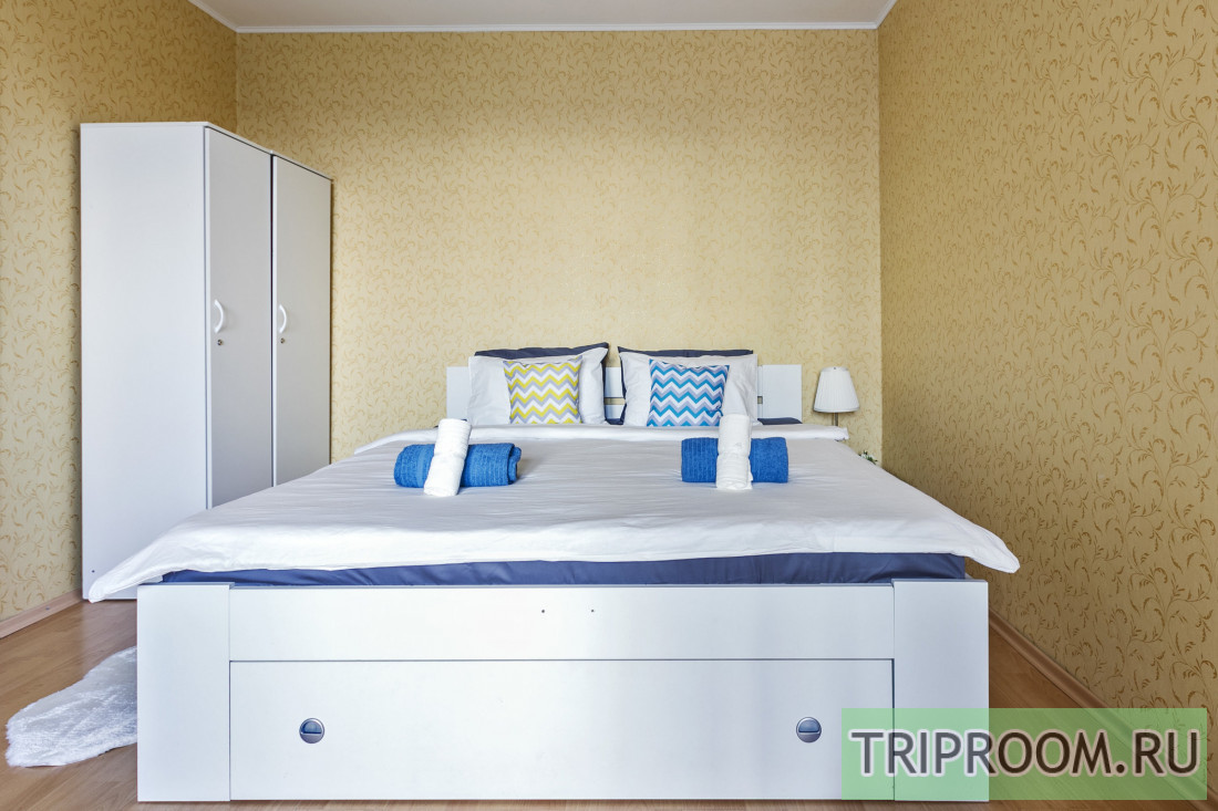 В комнате широкая двуспальная кровать и двуспальный диван, гардеробная, телевизор с 200+ цифровыми каналами. Квартира оборудована холодильником, плитой, микроволновкой, духовкой, чайником, стиральной машиной. Для курящих есть застекленная лоджия. Предоставляется посуда, бокалы, столовые приборы, всё необходимое для приготовления пищи, а также утюг с гладильной доской, фен, стиральный порошок, гель для душа и т.д. Санузел совмещенный, чистый, предоставляются полотенца, гель для душа. Безлимитный высокоскоростной интернет (Wi-Fi).