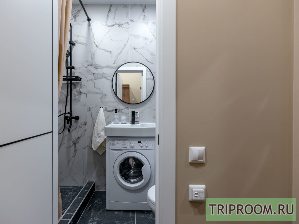 • Современная ванная комната с душем и наборами Flat Inn.