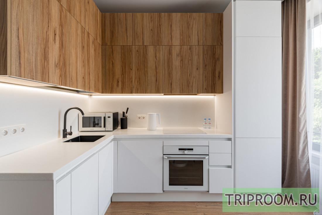 Кухня с варочной панелью, духовым шкафом, микроволновкой, чайником