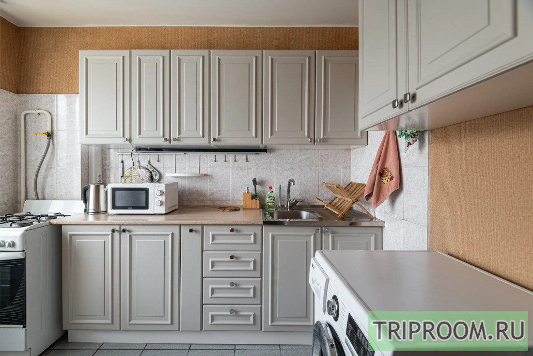 В квартире есть отдельная спальня, гостиная с диваном и телевизором, кухня со всем необходимым: плитой, микроволновой печью, чайником, посудой и бытовыми мелочами.