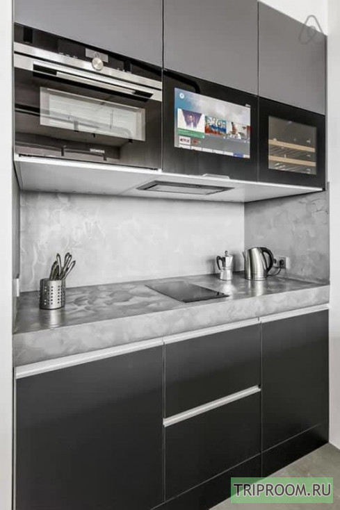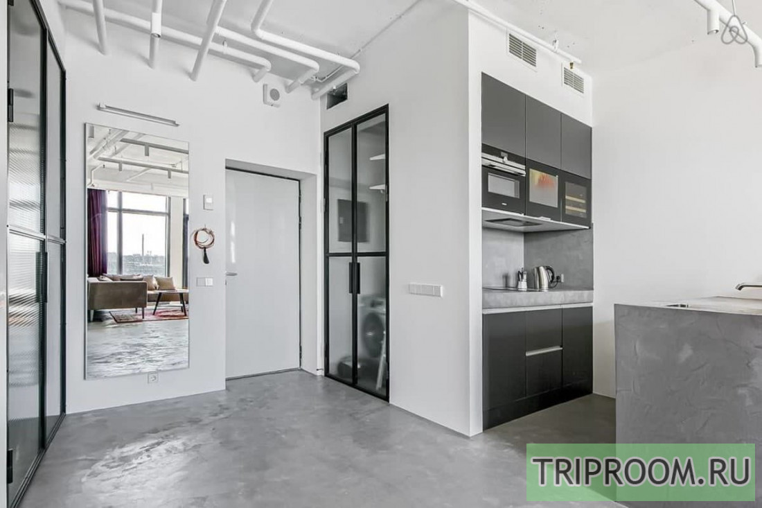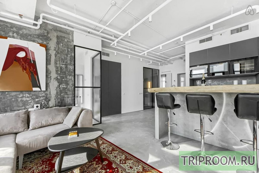 • Панорамные окна, совмещенная гостиная-кухня с телевизором Smart TV и кухонным островом, спальня с большой кроватью (double), ванная комната с джакузи.