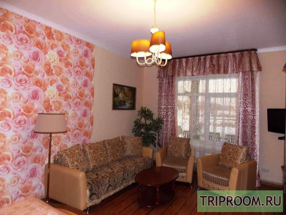 В доме в аренду предоставляется только первый этаж, в состав апартаментов входят: одна большая комната с двуспальной кроватью, диваном и креслами, кухня с диваном, душ и туалет, прихожая. Апартаменты рассчитаны для комфортного проживания 6 взрослых человек при парном размещении: 4 чел. в одной комнате на кровати и диване, 2 чел. на диване в кухне.